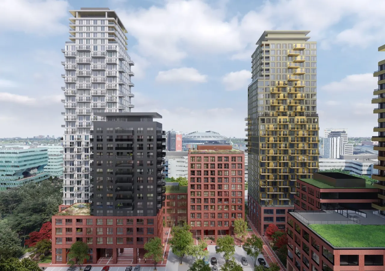 SPOT is a large-scale redevelopment of the Bullewijk office park in Amsterdam Zuidoost. SPOT will become a new cosmopolitan district with an Amsterdam character. The program consists of five alternating high-rise residential towers with fantastic views of the city, and low-rise buildings surrounding intimate squares and green streets. In addition to approximately 11,359 m² of office space, a total of 1,095 new homes will be built, consisting of a mix of ownership and rental properties with various living areas, as well as a wide range of amenities such as shops, restaurants, and other facilities, including a daycare center.