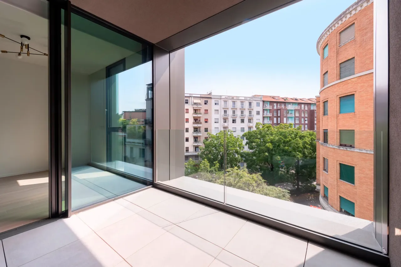 GarofaloPaisiello is an urban regeneration project in A4 class, located where Porta Venezia, Città Studi, and Centrale meet. With its pure volumes, refined materials, and dynamic geometries with sophisticated lines, it expresses a new concept of contemporary Milanese elegance, recalling in its essence forms and geometries belonging to the Milanese tradition. We offer on the fifth floor a furnished two-room apartment that combines the beauty of the spaces with the use of high-quality finishes and materials. The entrance opens onto the hallway, which filters to the east the living area, a large and bright environment that virtually extends onto the spacious loggia, an oasis to enjoy in every season, the open corner kitchen furnished with the most modern accessories and appliances, and the dining and TV area. To the west is the sleeping area, with a guest bathroom, the master bedroom, organized with an en-suite bathroom with shower cabin and window. Attention to detail is best expressed by the specification of the finishes, where aesthetics and innovation coexist to create unique environments. Included is a cellar, among the amenities: fitness area, locker, concierge, multipurpose room, bike storage. A single garage is available on request (€300/month).