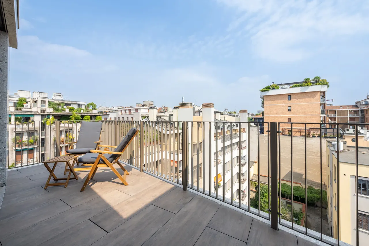 Located within the prestigious Quindes residential complex, in the Corso Italia area, we offer an exclusive sale of a charming one-bedroom apartment, classified as an A-class property, ideal for generating rental income. It perfectly combines elegance and comfort in the heart of Milan’s historic center. Currently rented, it is situated on the sixth and top floor, serviced by an elevator, and offers an ideal location that harmoniously blends tradition and modernity within the urban landscape of Milan. The living area welcomes visitors with spacious interiors and abundant natural light from large windows leading to a lovely 15 sqm terrace, offering beautiful views of the surrounding rooftops. The kitchenette, equipped with all appliances, has access to a balcony, while the sleeping area includes a master bedroom and an en-suite bathroom. High-quality finishes, such as the warm parquet flooring and double-glazed windows, add style and comfort to the space.